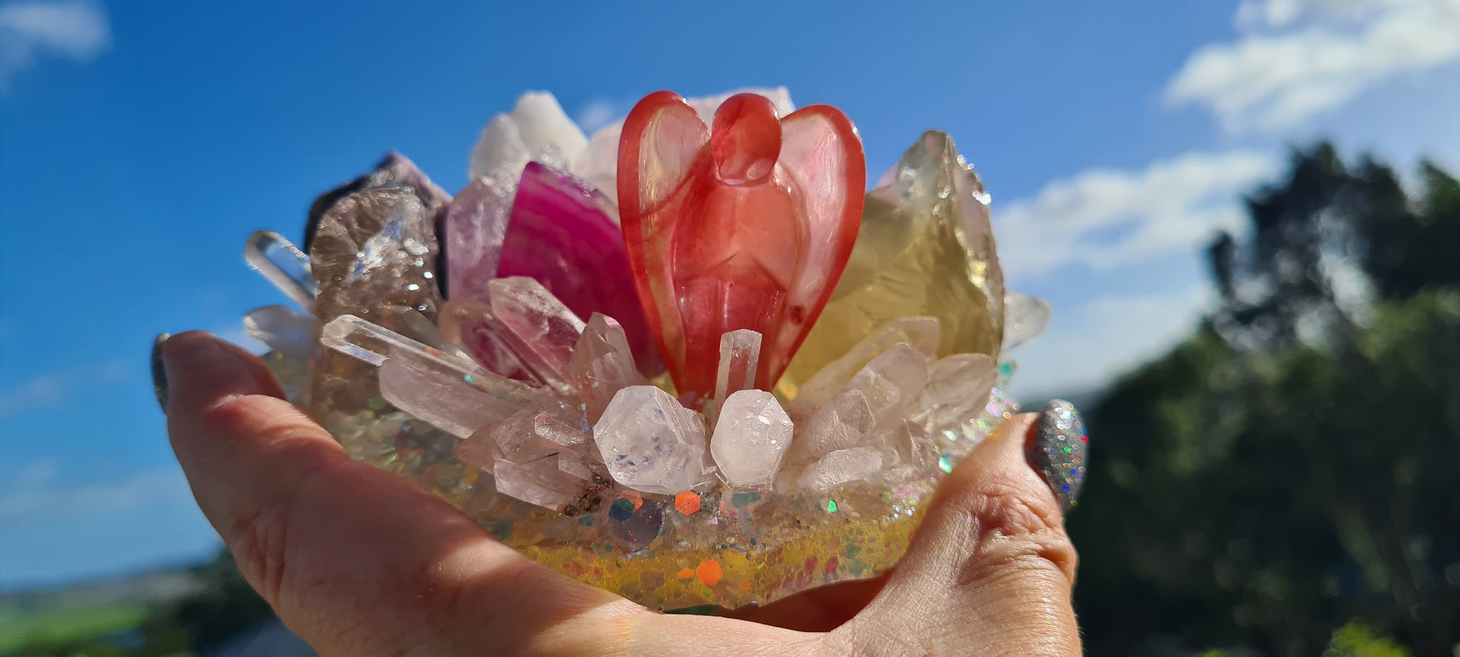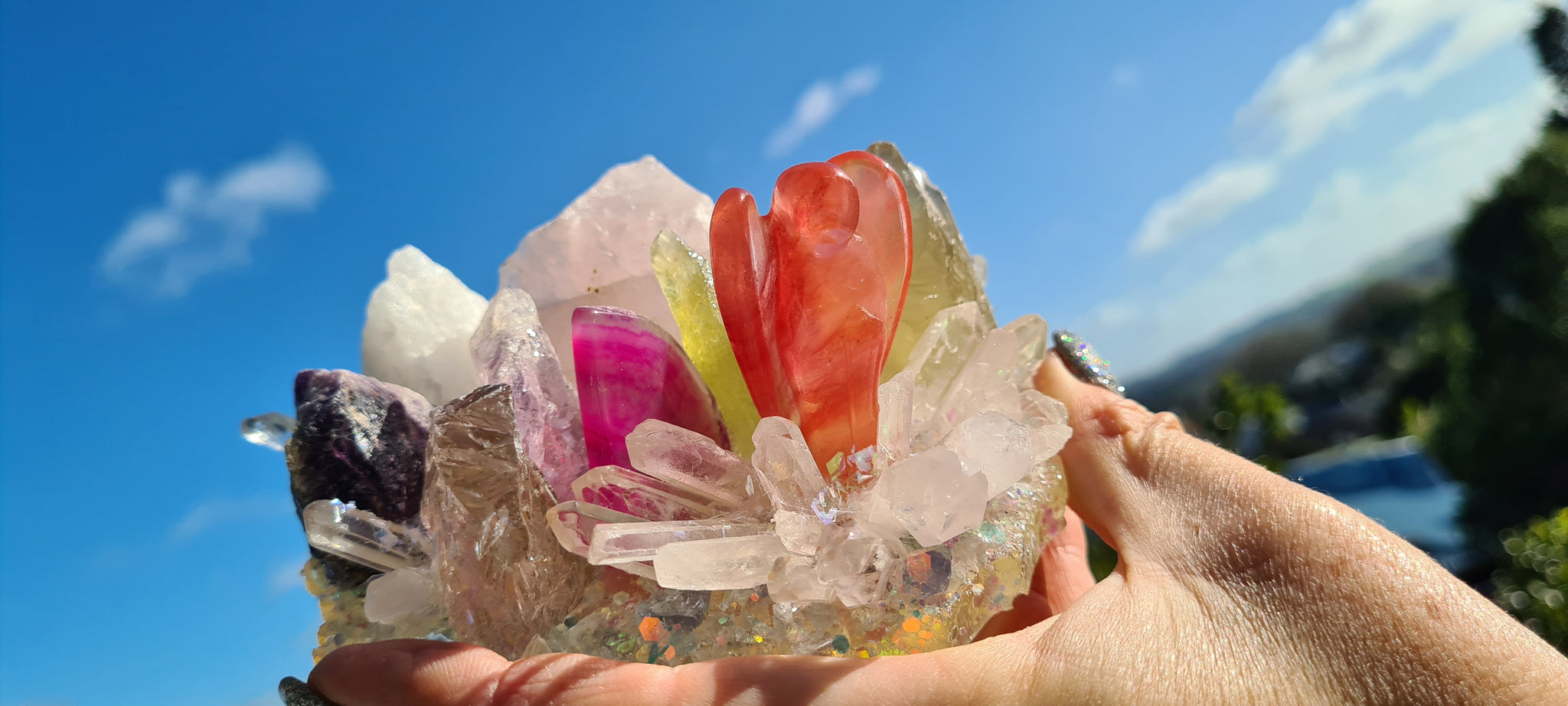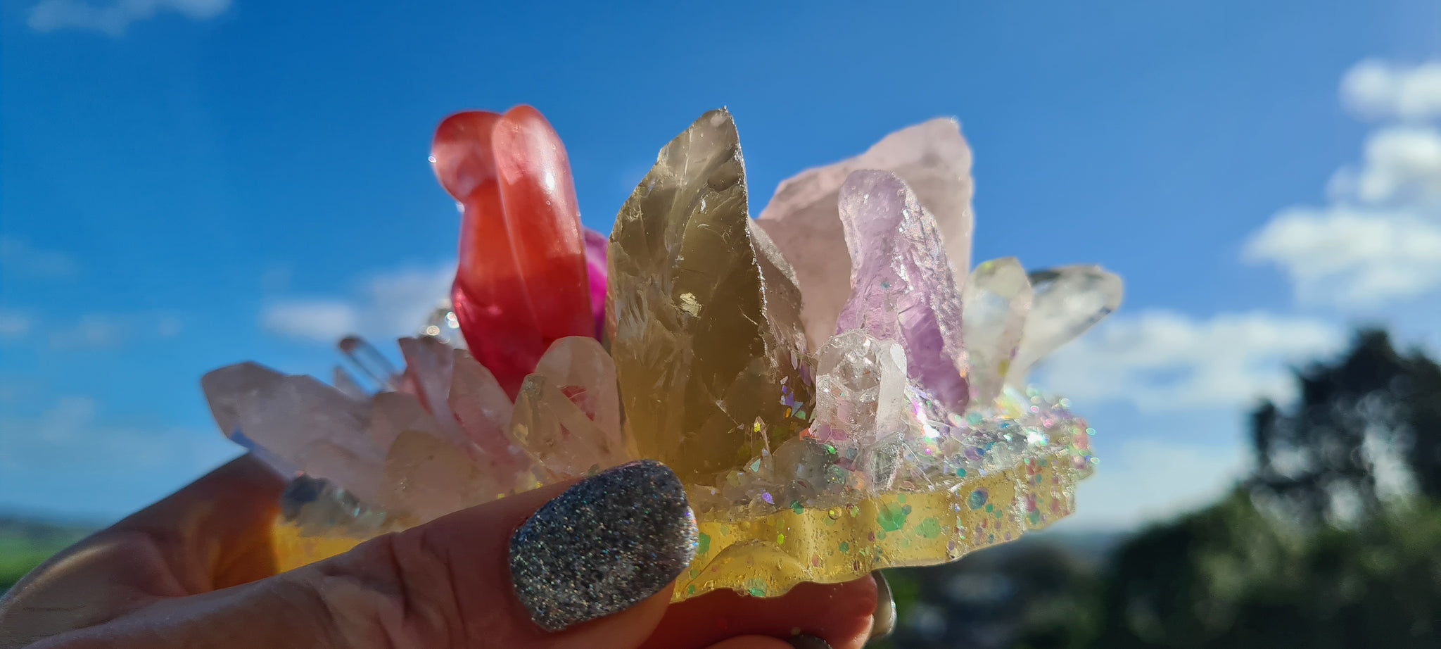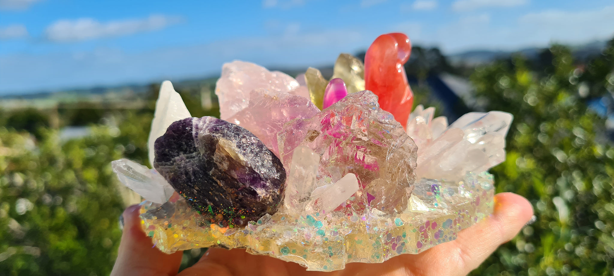 Chevron and plain amethyst , clear & rose & smokey quartz, green calcite raw