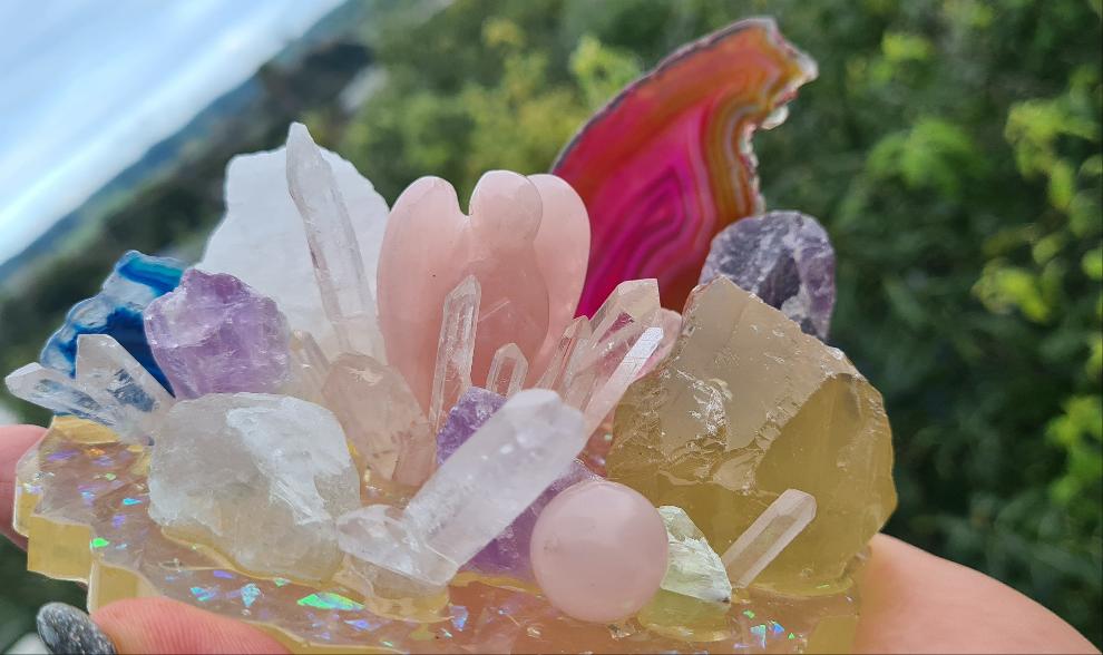 Chevron and plain amethyst , clear quartz & green flourite,citrine raw
