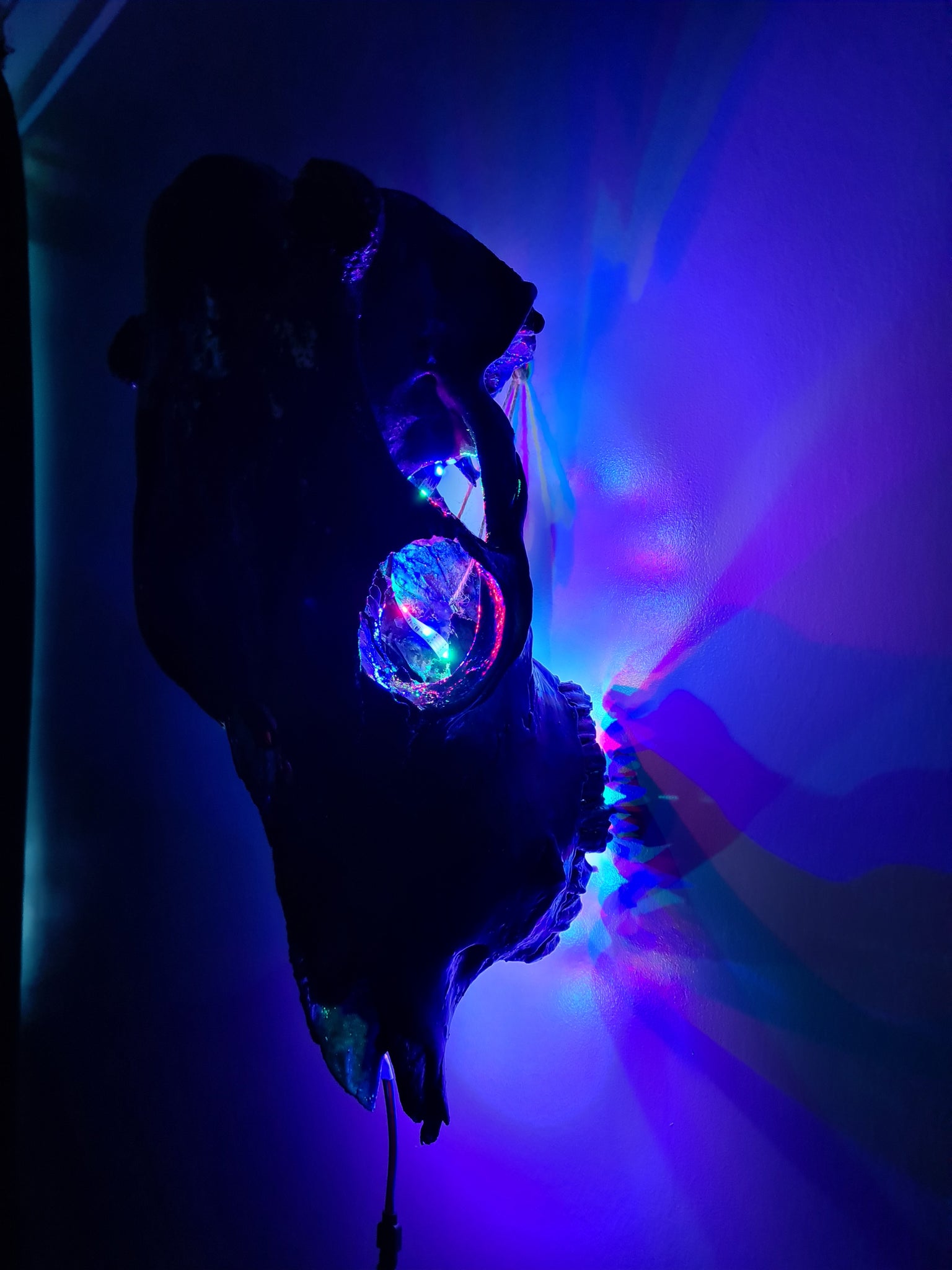 Painted with resin paint shades of purple blues Metallica and chameleon paint which changes colour in different angles